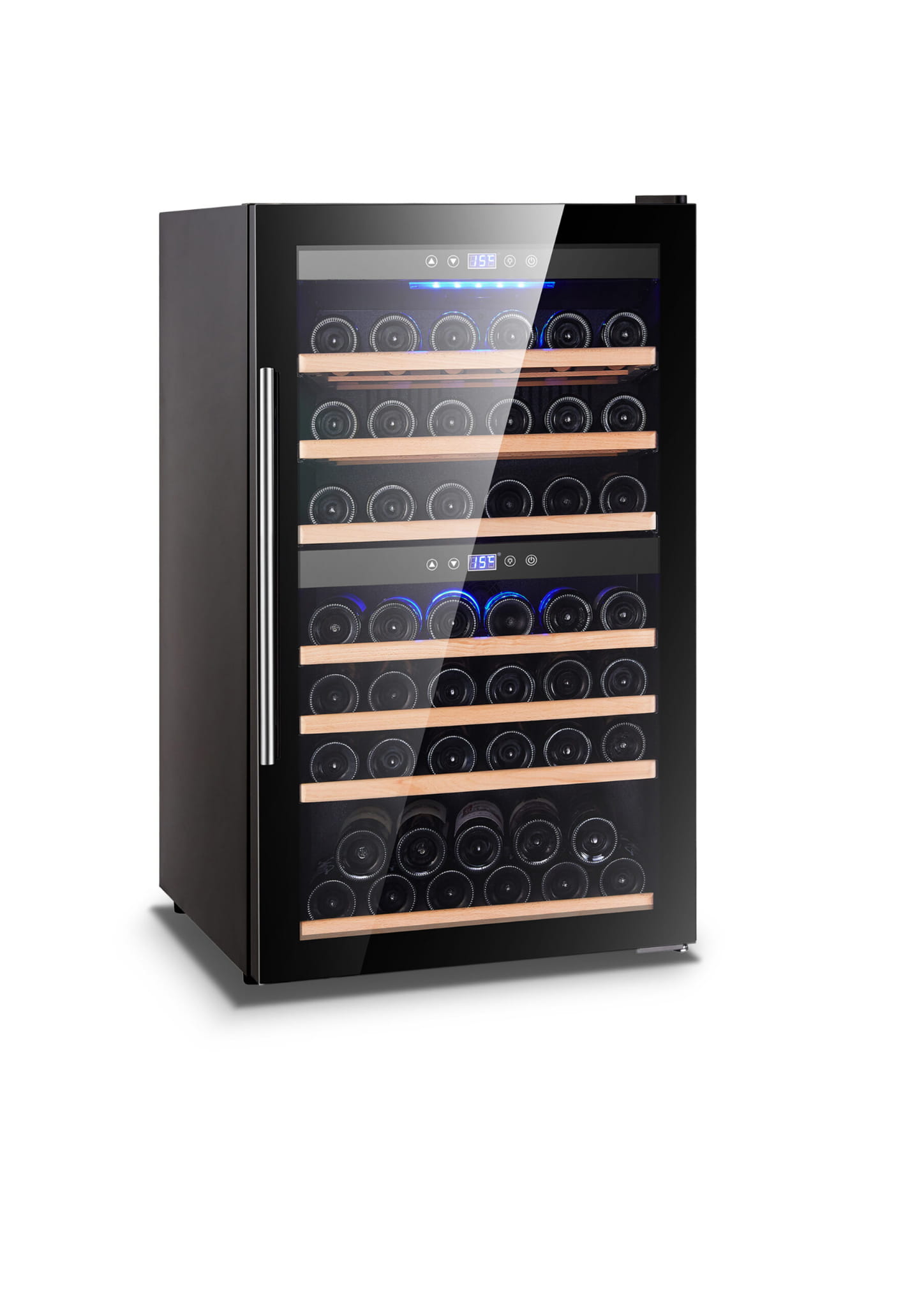 - Zakres temperatur od 5 °C do 20 °C (tryb dwustrefowy) pozwala na przechowywanie różnych rodzajów win — od białych po czerwone.