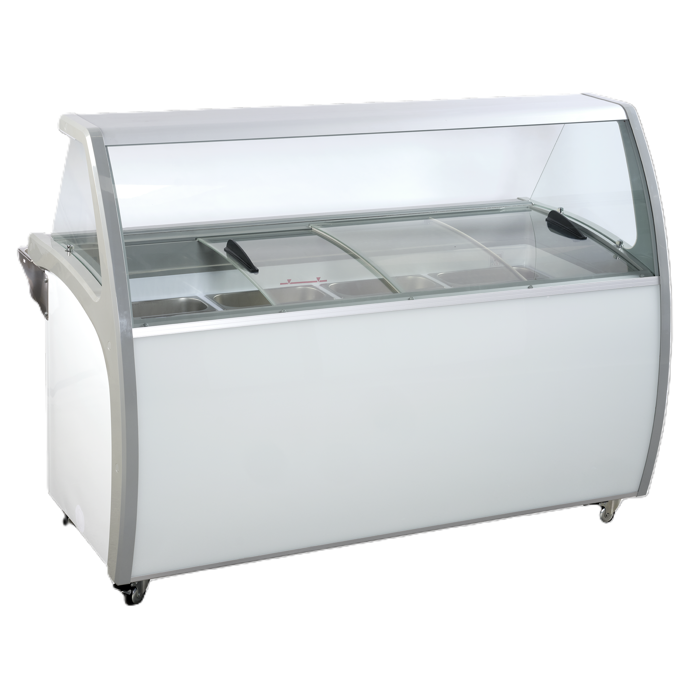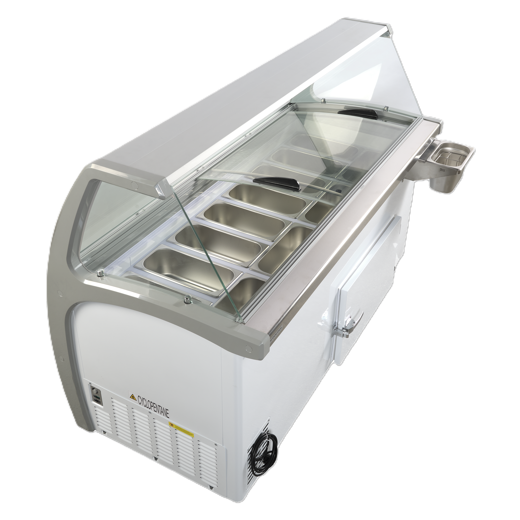 - Przesuwne, szklane pokrywy z zamkiem ułatwiają serwowanie w ciągu dnia i pozwalają bezpiecznie zamknąć witrynę na noc