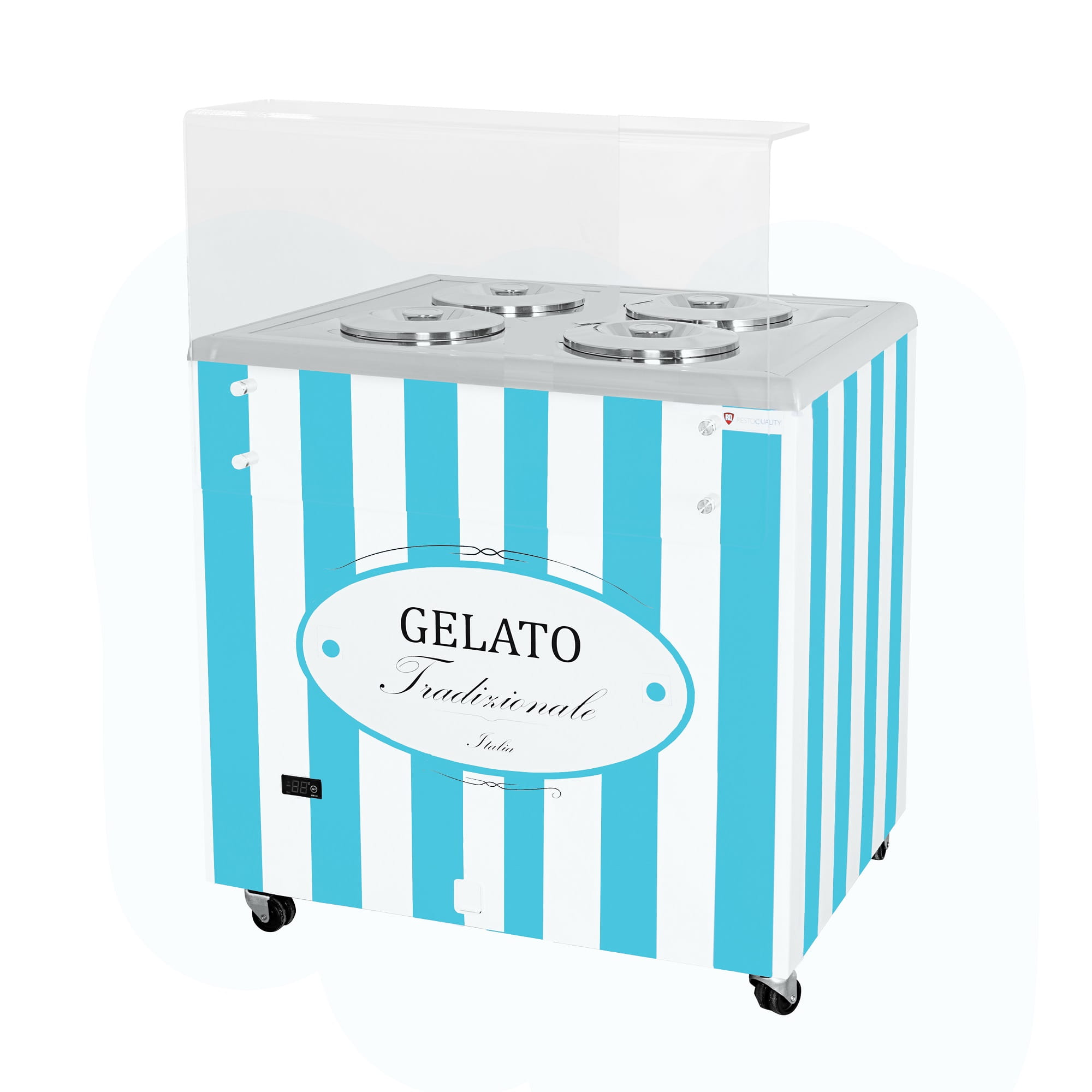 Dystrybutor do lodów | witryna do lodów | konserwator | retro | 4 tub | okrągłe kuwety | 843x670x895 mm | GELATO POZETTI 4 BLUE