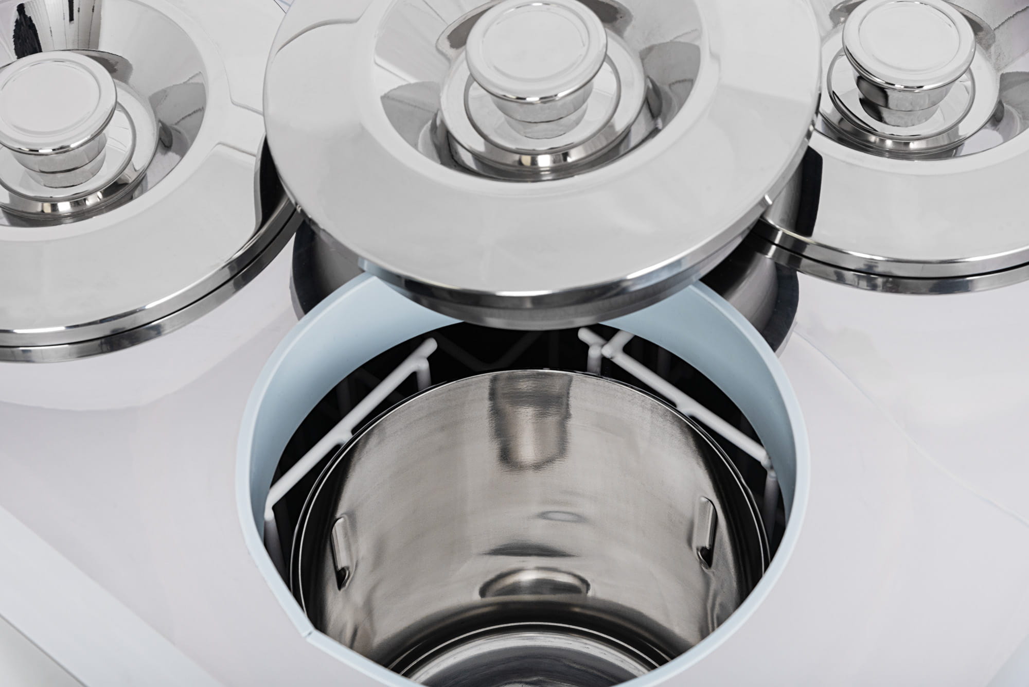 - Pomieści 6 tub o wymiarach ø200x250 mm z miejscem na przechowywanie zapasowych 4 tub