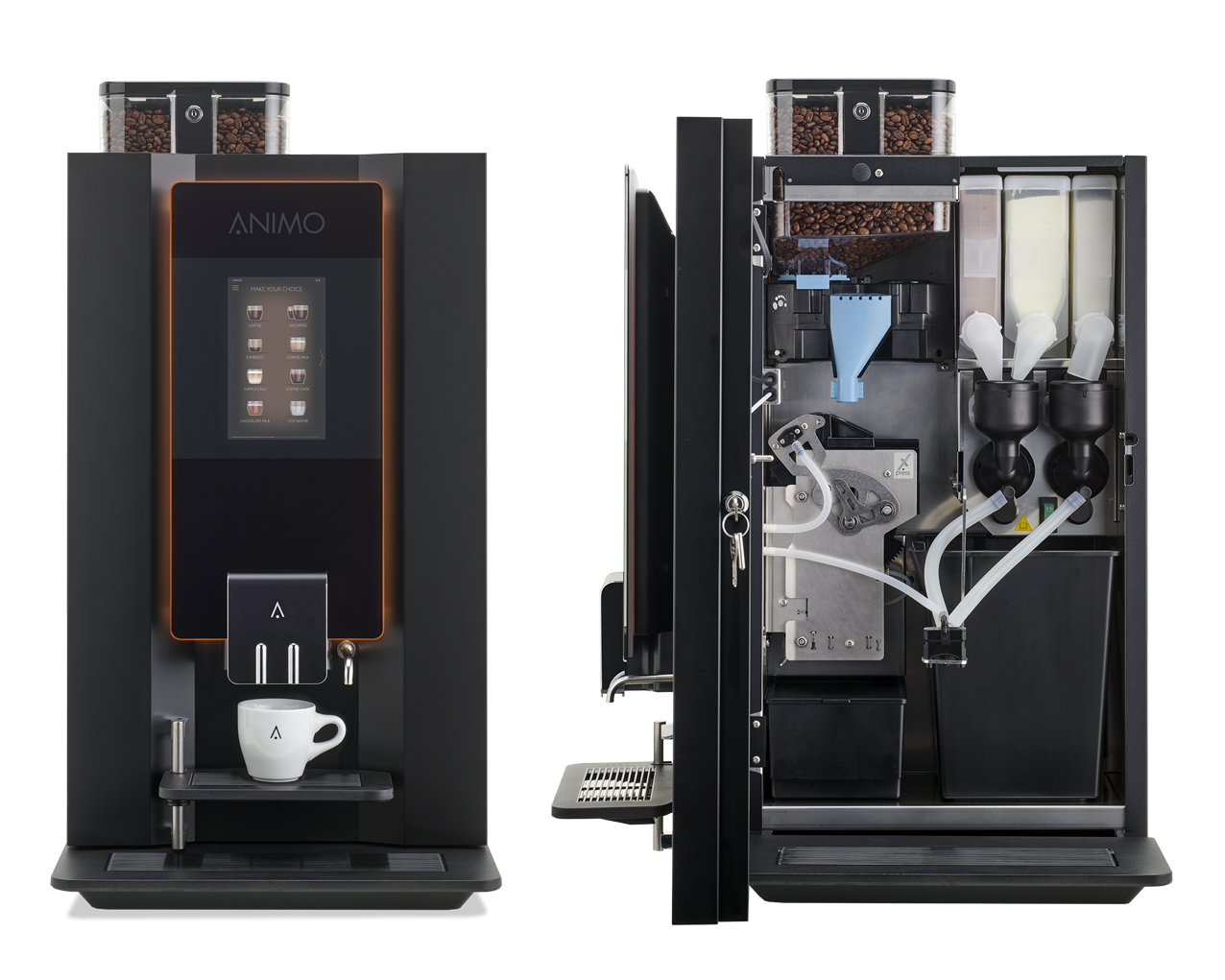 OptiBean X jest wykonany ze stali nierdzewnej i tworzyw sztucznych nadających się do recyklingu. Wszystkie części są starannie dobierane przez Animo i bardzo wysokiej jakości – z naciskiem na niezawodność, trwałość i łatwość obsługi