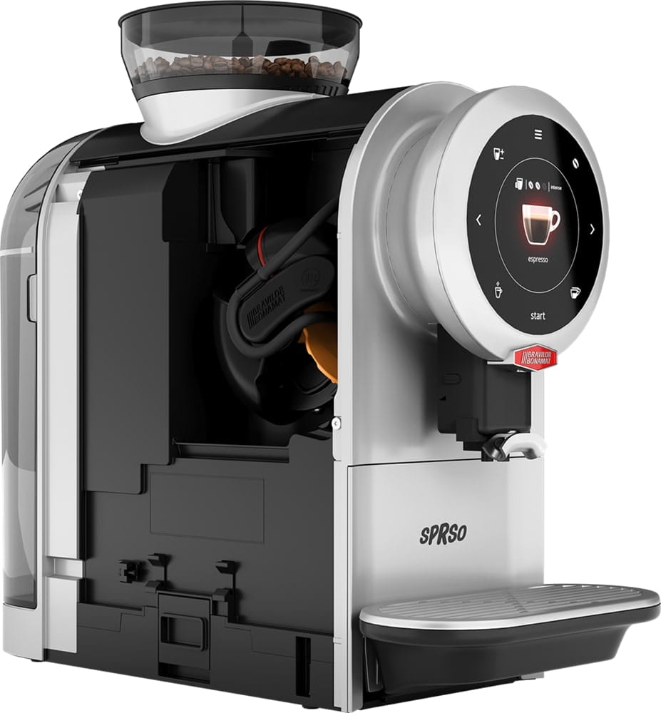 Ten przyciągający wzrok ekspres na ziarno podaje idealne filiżanki espresso i czarnej kawy. Opcja chłodziarki do mleka oferuje dodatkowo system do tworzenia pysznego cappuccino i latte. Sprso doskonale nadaje się do sal konferencyjnych, poczekalni, salonów kosmetycznych, małych biur, sklepów detalicznych, a także kuchni domowych