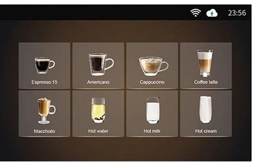 - Przygotowanie kawy przy pomocy jednego przycisku – Sterowanie cyfrowe, duży 7 calowy, kolorowy ekran dotykowy