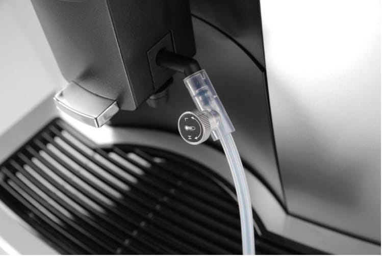 - Możliwość podłączenia ekspresu do sieci wodnej zapewnia ciągłą pracę ekspresu bez konieczności dolewania wody do pojemnika