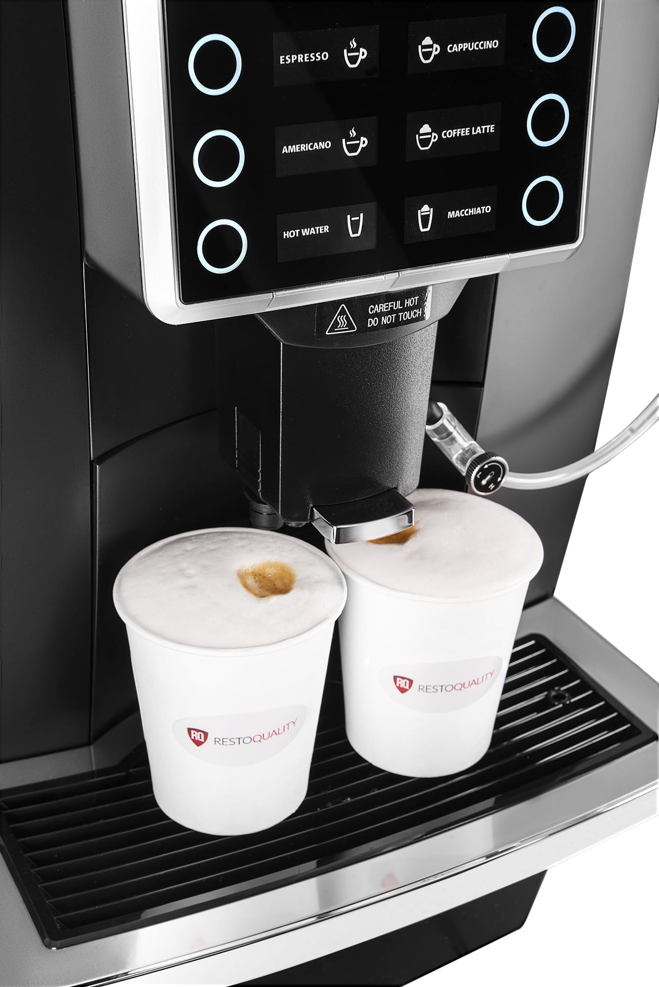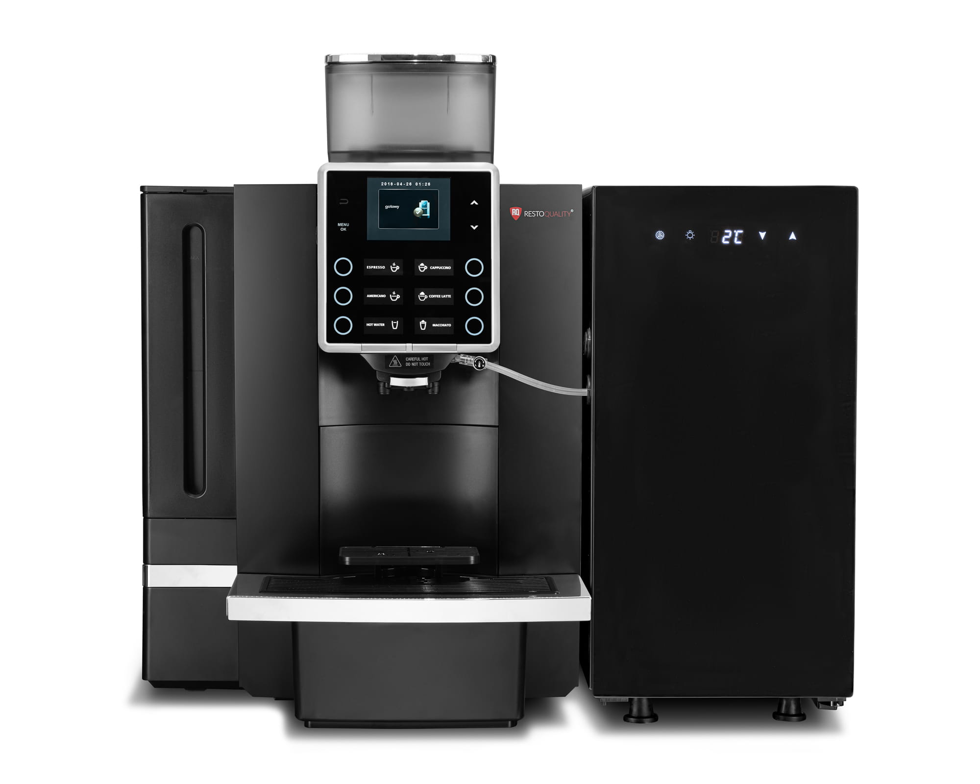 - Możliwość zaprogramowania różnych napojów: espresso, americano, cappuccino, latte, latte macchiato, gorące mleko, gorące spienione mleko, gorąca woda, podwójne espresso, podwójne cappuccino, podwójne latte, podwójne latte macchiato, podwójne gorące mleko, podwójne gorące spienione mleko
