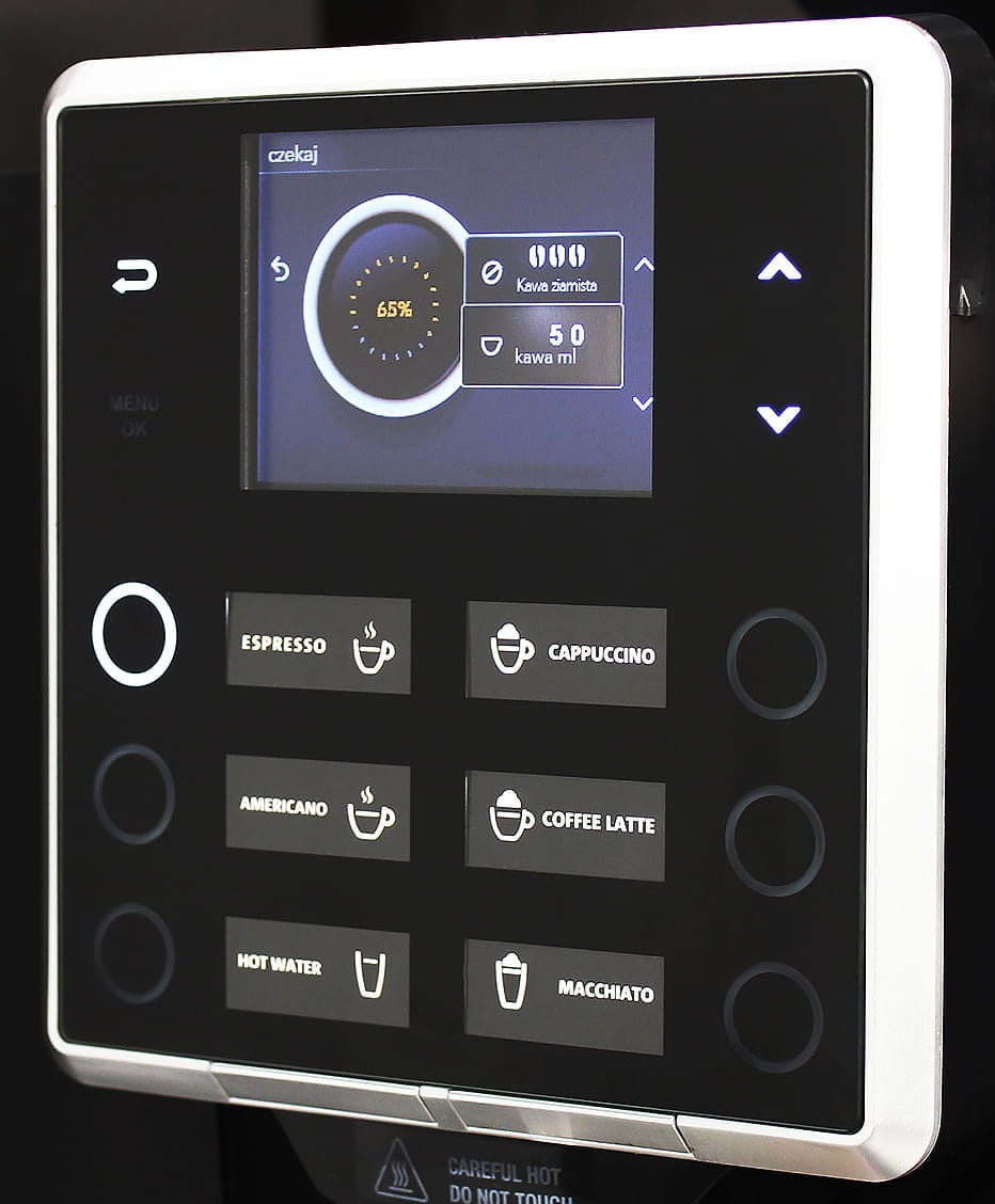 - Ekspres idealnie nadaje się do samoobsługi, dzięki intuicyjnemu panelowi sterowania