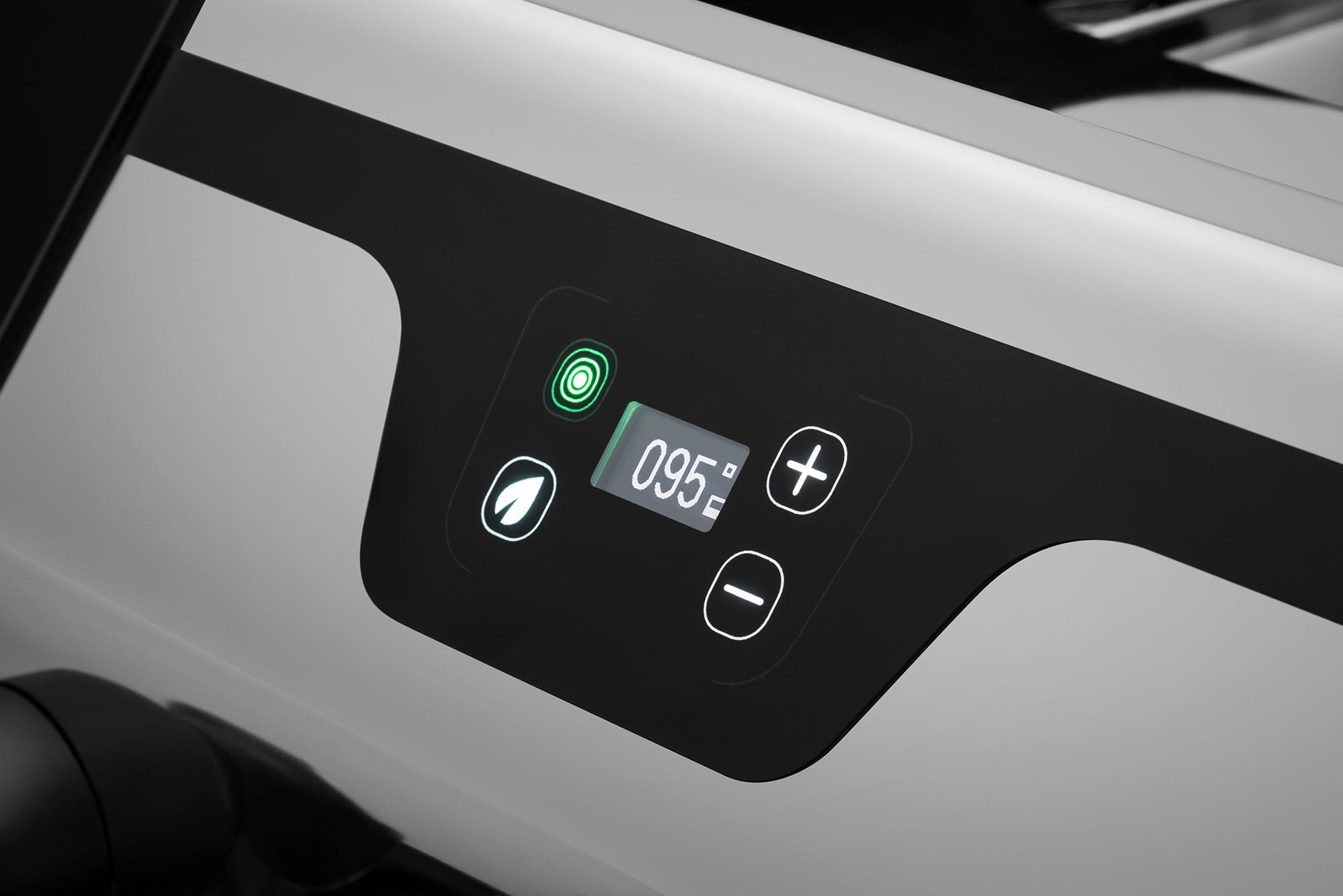 - Wyświetlacz OLED z czteroma przyciskami pojemnościowymi, które pozwalają na ustawienie temperatury zaparzania, temperaturę pary