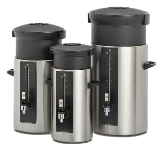 - Ekspres występujący także w różnych wersjach, pojedynczych i podwójnych, z termosami po pojemności 5, 10, 20, 40 litrów, z wylewką gorącej wody