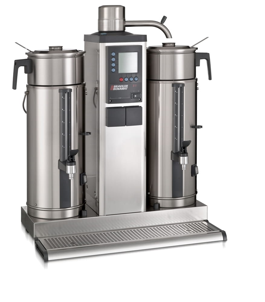 Ekspres przelewowy do kawy Bravilor Bonamat Seria B to idealne rozwiązanie w sytuacji kiedy musimy szybko podać dużą ilość kawy w krótkim czasie. Dzięki wysokiej wydajności i solidnej konstrukcji ekspres jest dedykowany dla branży Horeca. Wszędzie tam gdzie kawa na śniadanie serwowana jest w dużych ilościach. Seria B to idealne ekspresy dla szpitali czy jednostek wojskowych. Urządzenia serii B gwarantują bezpieczeństwo użytkowania poprzez zastosowanie szeregu zabezpieczeń, które uniemożliwiają poparzenie czy niewłaściwą obsługę ekspresu. Model z 1 systemem parzenia i 2 termosami po 5 litrów