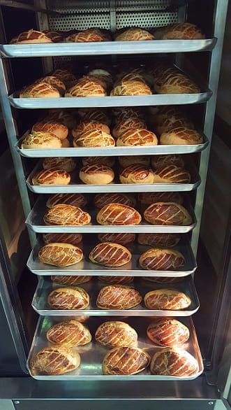 - Obrotowy ruszt w połączniu z przepływem ciepłego powietrza w komorze pieczenia gwarantują równomierność wypieków
