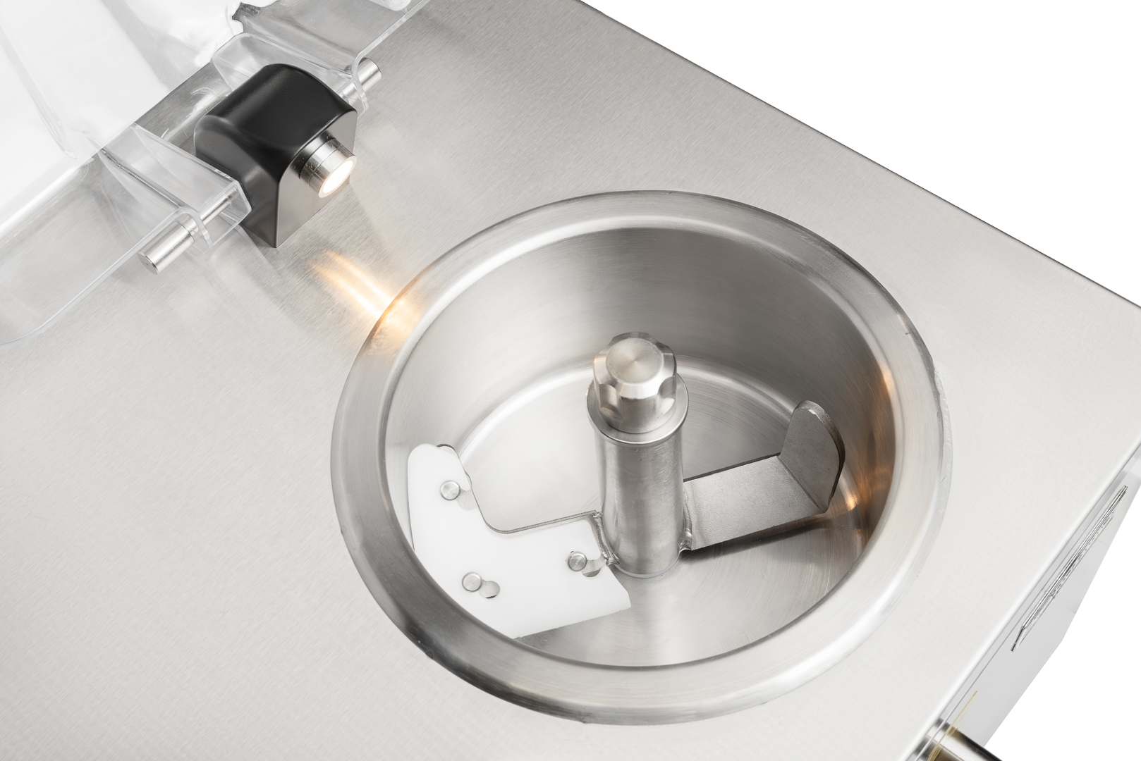 - Wytrzymałe mieszadło ze skrobakiem zapewniające jednostajne i dokładne mieszanie schładzanej mieszanki.