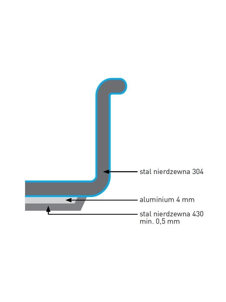 - Dno formowane w technologii impact bonding zapewnia idealne łączenie warstw gwarantując odporność na korozję i umożliwia lepszy transfer ciepła