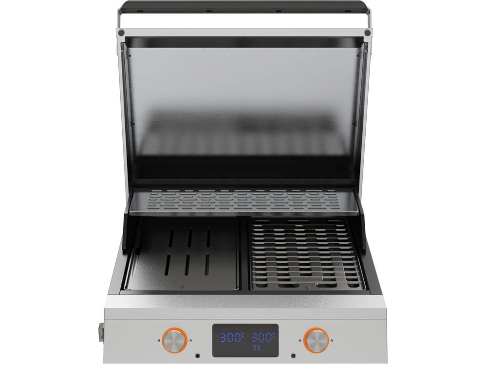 - 2 odrębnie sterowane strefy grillowania zapewniają niezależność obróbki.