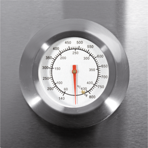 - Termometr w pokrywie zapewnia kontrolę nad temperaturą wewnątrz grilla.
