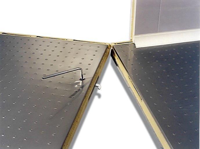 - wewnętrzne i zewnętrzne pokrycie ścian paneli wykonane jest z atoksycznej białej blachy metalowej podczas gdy panele podłogi pokryte są antypoślizgową stalą nierdzewną AISI 304 z odpowiednim wzmocnieniem wnętrza dla lepszego rozłożenia obciążenia. Na zamówienie dostępne są inne pokrycia wykonane z powlekanej blachy stalowej, blachy nierdzewnej AISI 304 i wzmocniona podłoga odporna na większe obciążenia.