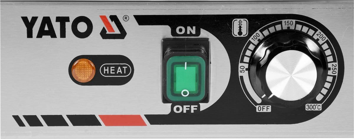 - Grzałka o mocy 2,2kW sterowana jest za pomocą potencjometru umieszczonego na płycie frontowej. Możliwe jest ustawienie temperatury pracy w zakresie 50~300℃. Zainstalowany bryzgoszczelny wyłącznik pozwala na wyłączenie grilla, gdy jest on nieużywany, bez konieczności odłączania kabla zasilającego z sieci. Grill zasilany jest prądem o napięciu 230 V