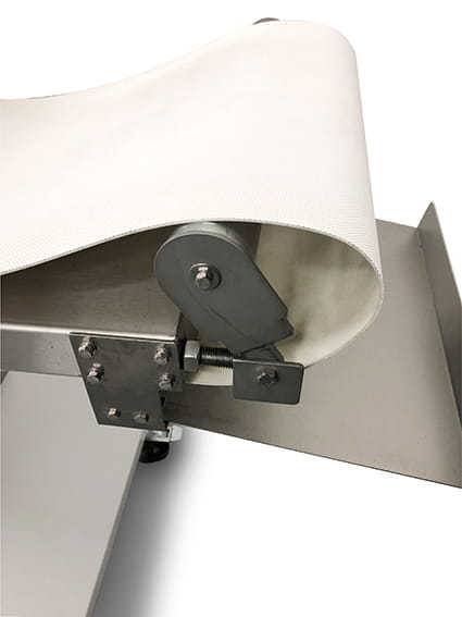 - Pod taśmą transportową znajduje się szczotka czyszcząca, która oczyszcza taśmę z okruchów