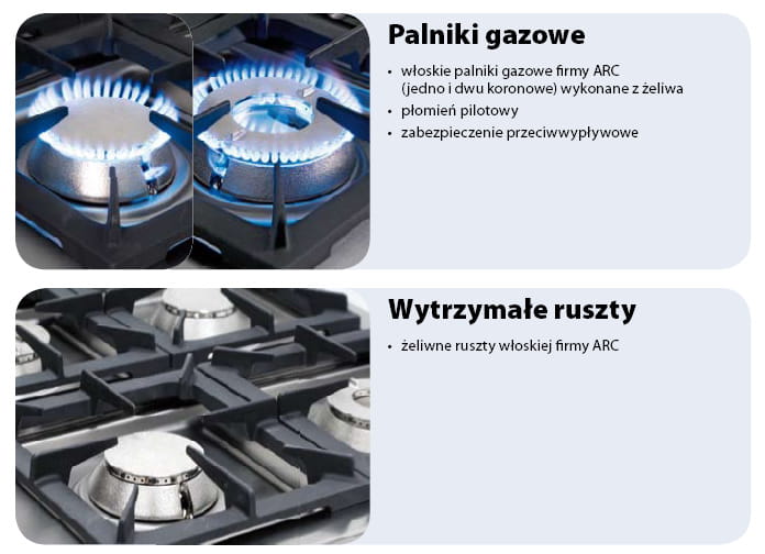 - różna konfiguracja palników: 3.5kW; 2x5kW; 7kW-dwukoronowy