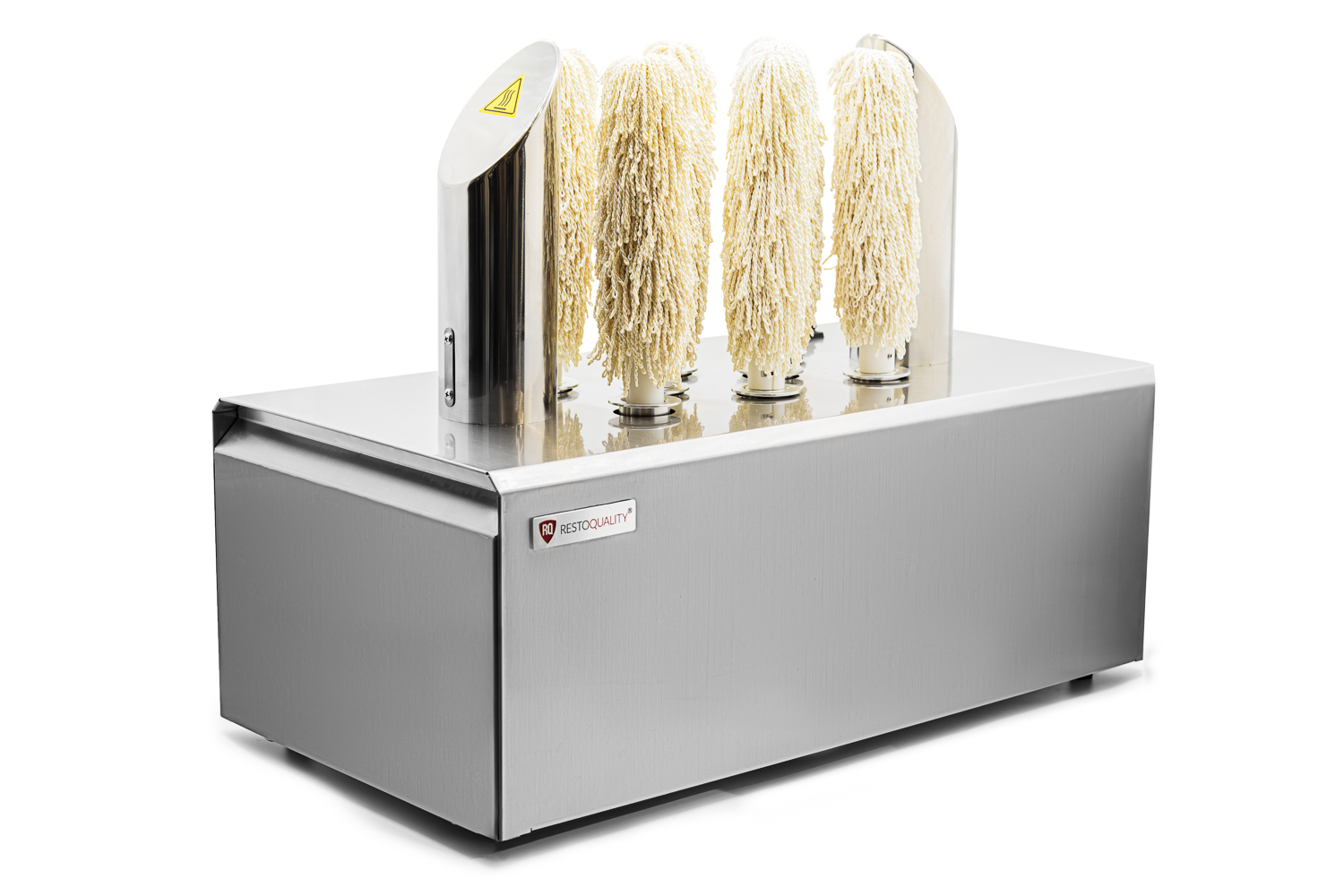 - Urządzenie skutecznie osusza i poleruje powierzchnię szkła, eliminując zacieki oraz smugi, co znacząco podnosi standard serwowanych napojów
