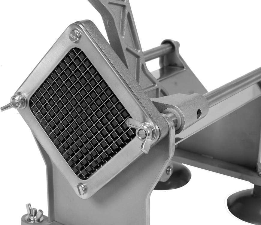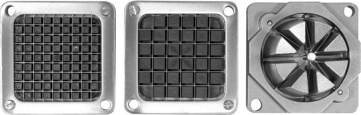 - W zestawie 4 wymienne ostrza do krojenia: w słupki (frytki) 6x6 mm, 9x9 mm oraz 13x13 mm