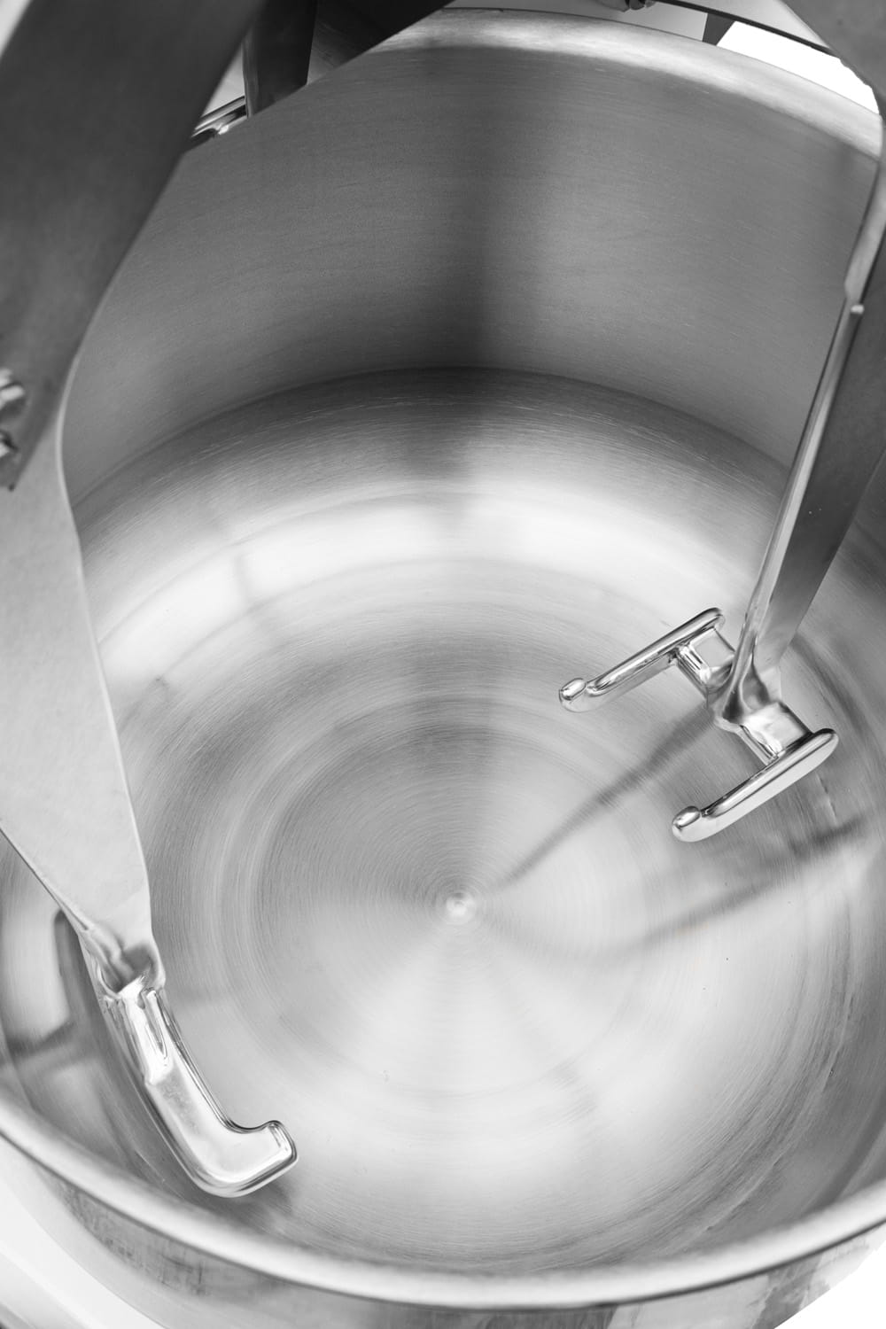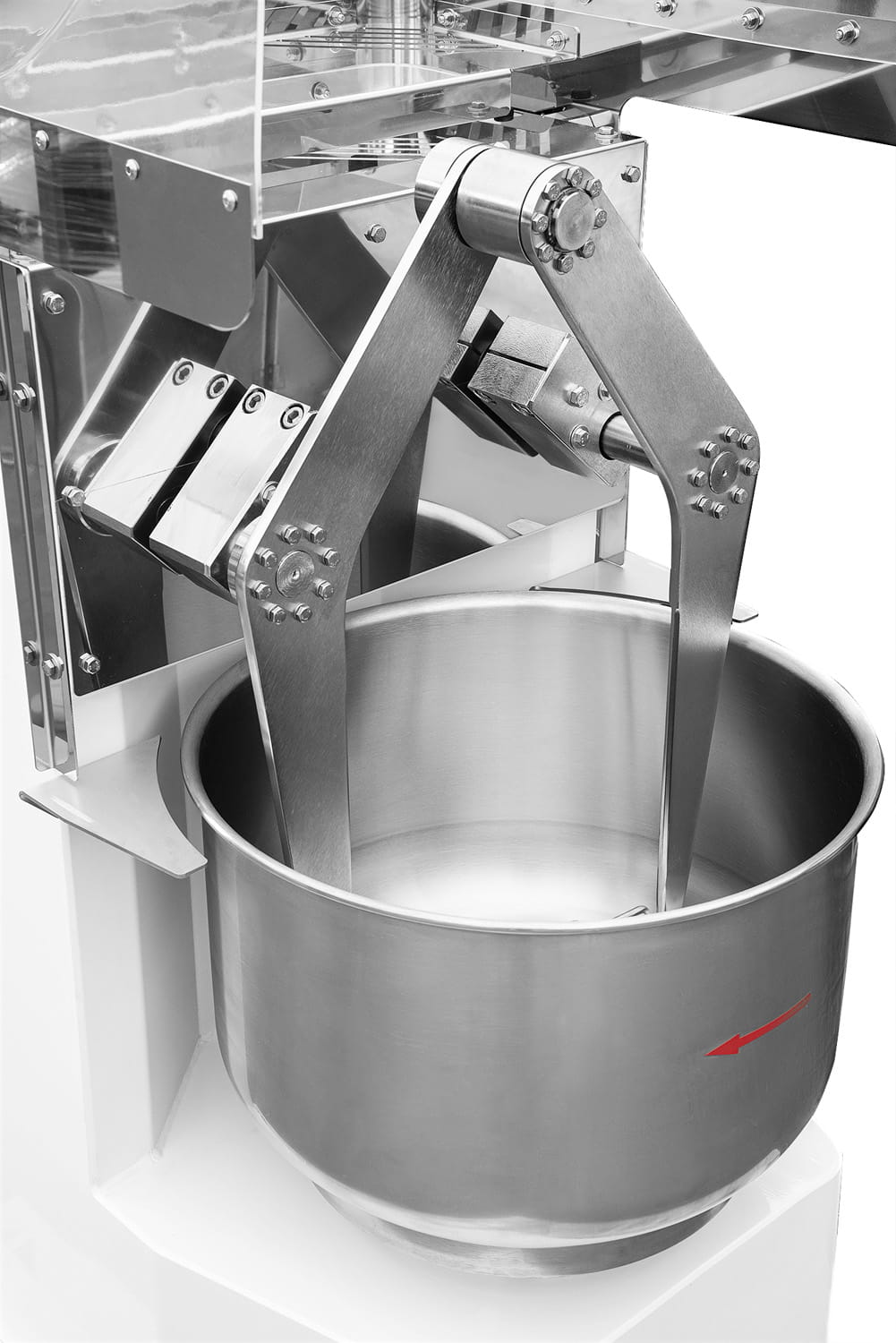 - Specjalna konstrukcja ramion odtwarza tradycyjne ruchy ręcznego wyrabiania ciasta (ugniatanie, podnoszenie, rozciąganie i składanie ciasta)