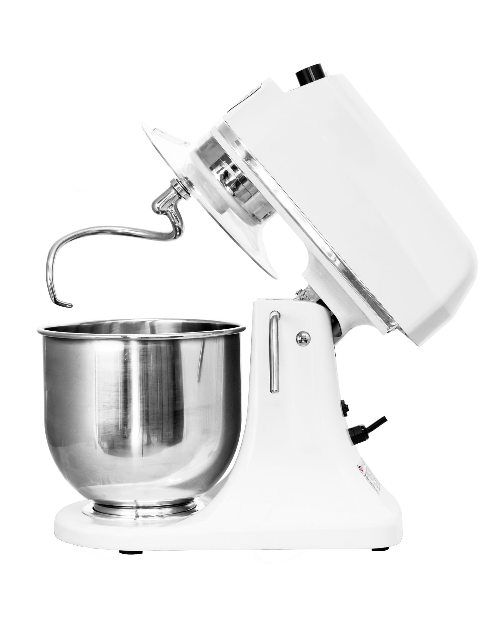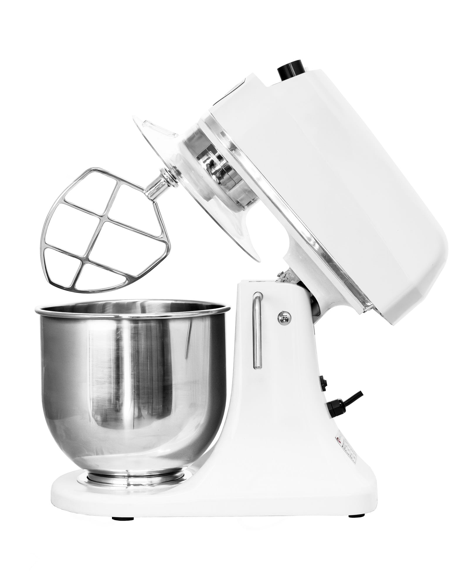 - W zestawie: dzieża, płaskie mieszadło, trzepaczka do jajek oraz hak ze stali nierdzewnej