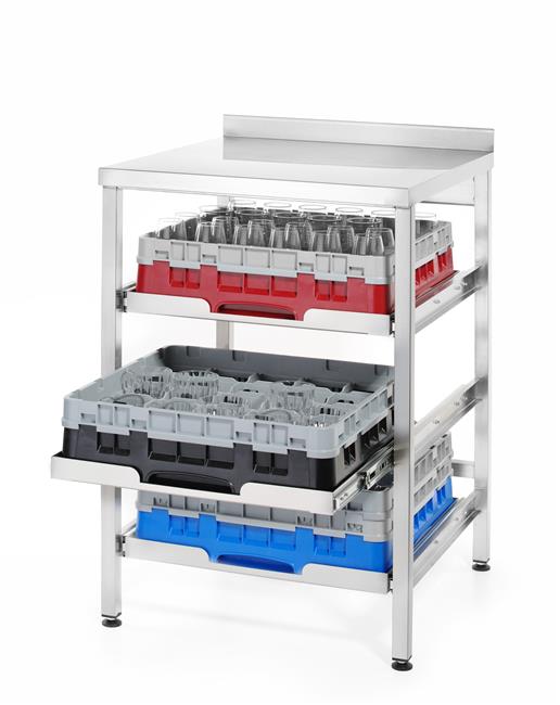 - łatwo wysuwane pokłady na których zdeponowano 3 kosze ze szkłem.