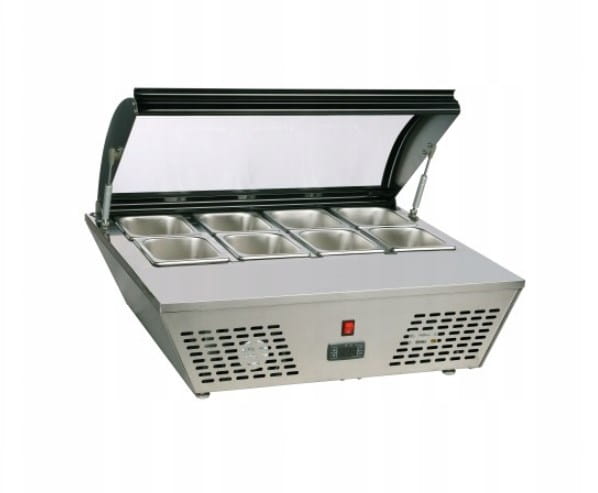 - Nadstawka chłodnicza RTW-67L jest urządzeniem ekspozycyjnym zaprojektowanym do pracy w linii gastronomicznej, mieszczącym 8 pojemników GN 1/6, co pozwala na wygodne serwowanie składników.