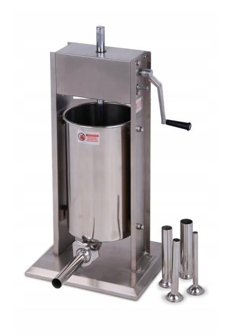 - Profesjonalna, pionowa nadziewarka do kiełbas o pojemności 12 litrów wykonana w całości ze stali nierdzewnej przeznaczona dla restauracji oraz użytkowników indywidualnych przyrządzających własne wyrób