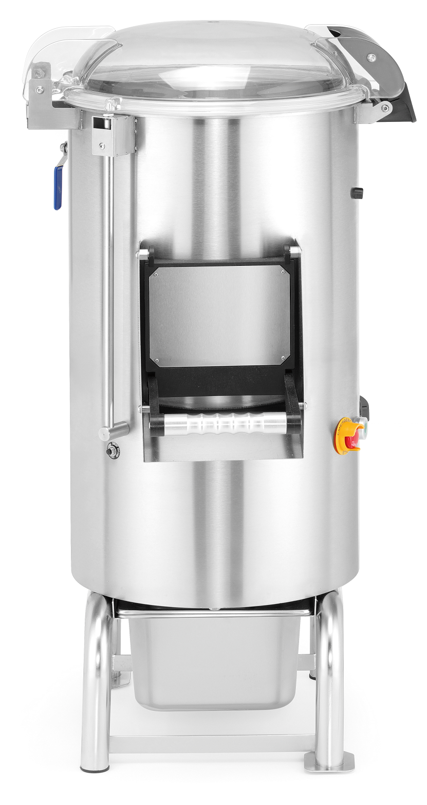 - Wyposażony w przyłącze do świeżej wody i odpływu, do płukania ziemniaków podczas obierania