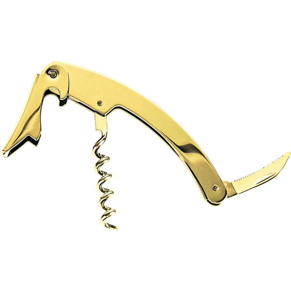 Otwieracz | korkociąg kelnerski | złoty | zakrzywiony | 3-funkcyjny