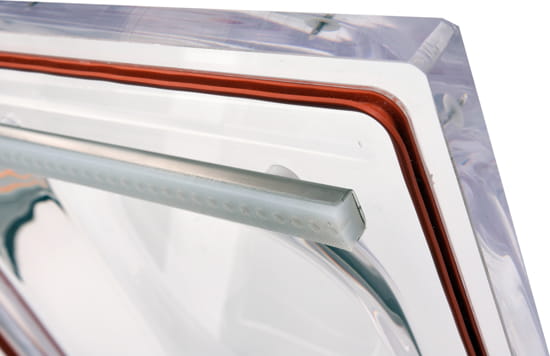 - Pokrywa pakowarki wykonana jest z bardzo masywnego tworzywa sztucznego w transparentnym kolorze. Umożliwia to śledzenie procesu pakowania i pełną jego kontrolę.