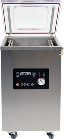 - Pakowarka próżniowa marki YATO wykonana jest z najwyższej jakości surowców. Komora próżniowa, o wymiarach 440x310x75/125 zrobiona jest z grubej i masywnej stali nierdzewnej, co gwarantuje bardzo długi okres użytkowania. Zaokrąglone kształty ułatwiają utrzymanie jej w czystości.