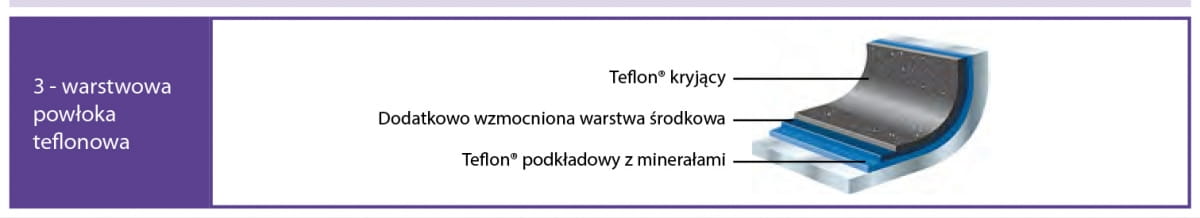 - trzywarstwowa powłoka teflonowa zapobiegająca przywieraniu, odporna na zarysowania