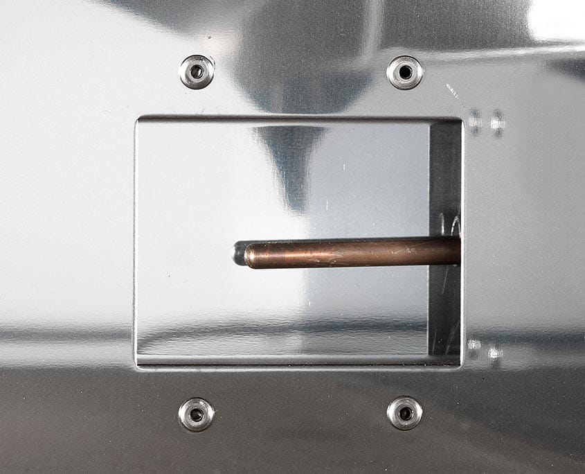 - Podwójny wentylator oraz izolacja z wełny skalnej, zapewniają odpowiednią barierę termiczną