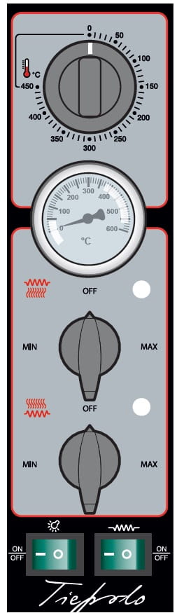 - Precyzyjna kontrola ciepła poprzez manualną regulację temperatury, oraz oddzielne, niezależne sterowanie górnymi i dolnymi grzałkami