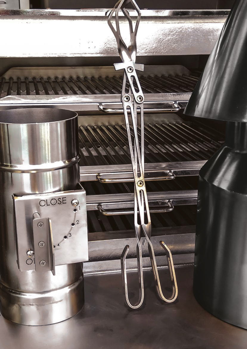 - konstrukcja pieca pozwala na mniejsze zużycie węgla oraz skrócenie czasu przygotowania potraw niż w przypadku otwartego grilla
