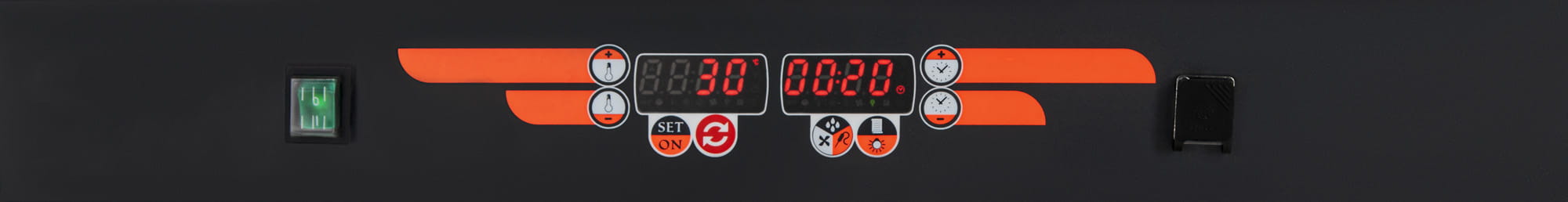 - oświetlenie wnętrza pieca gwarantują bardzo wydajne lampy halogenowe