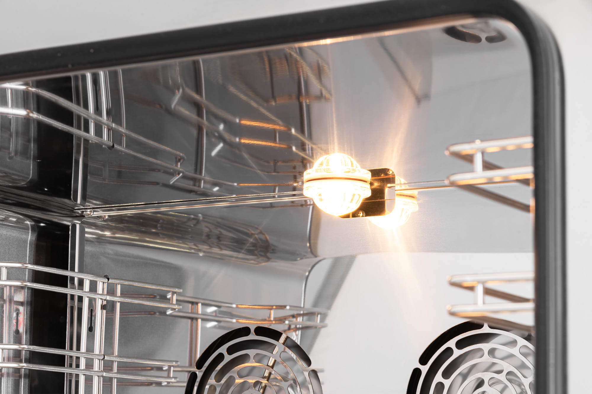 - W piecu można stosować zarówno pojemniki GN 1/1 jak i blachy 600x400