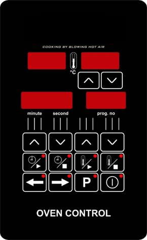 - Sterowanie za pomocą panelu dotykowego z możliwością zapisu różnych parametrów pieczenia