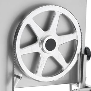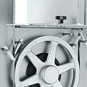- Urządzenie posiada dwa koła pasowe, górne służące do naciągania brzeszczotu oraz dolne, które pełni rolę napędową