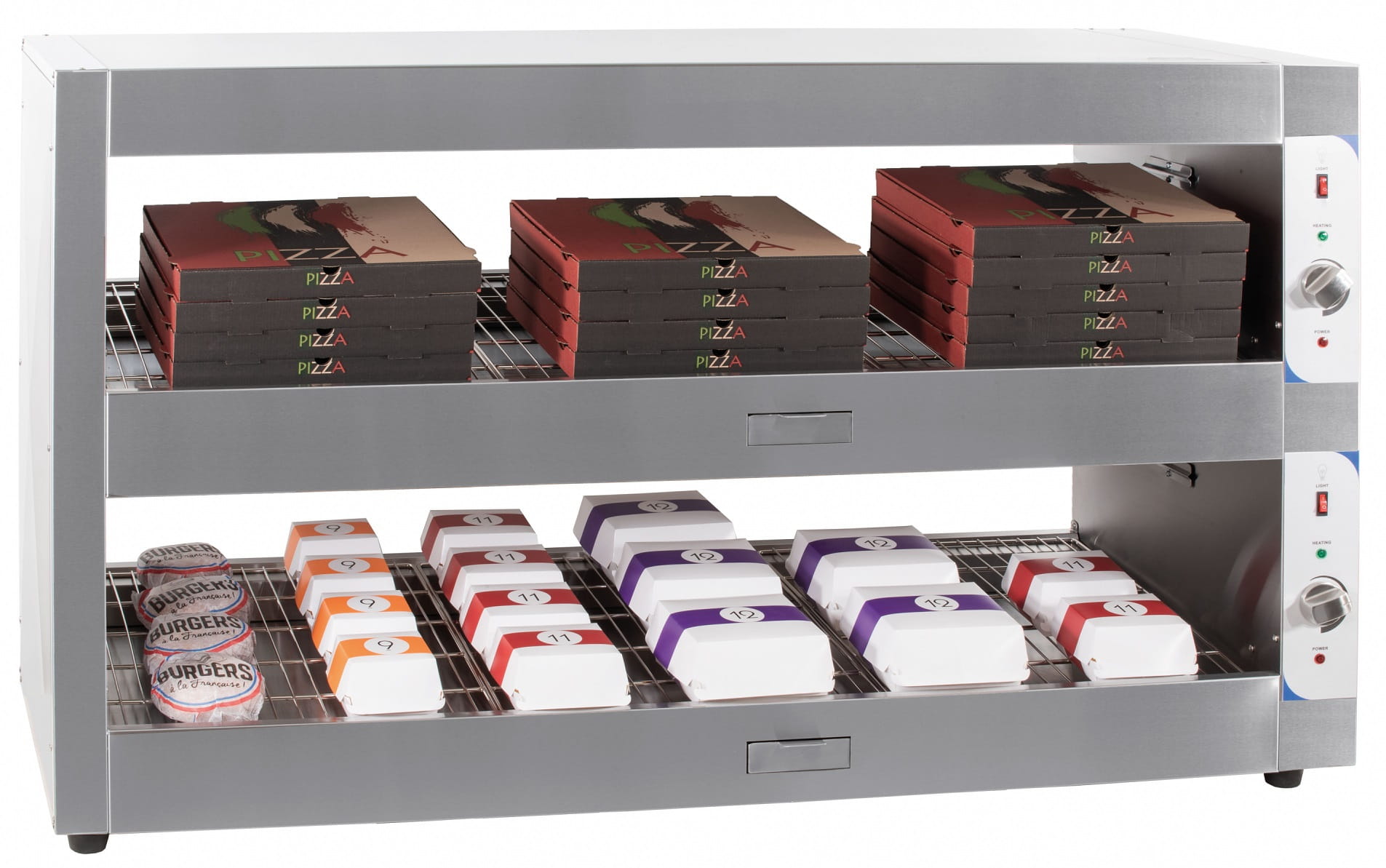 - Witryna grzewcza została stworzona z myślą o demonstracji i utrzymywaniu stałej temperatury potraw przed wydawaniem i dystrybucją produktów restauracji szybkiej obsługi