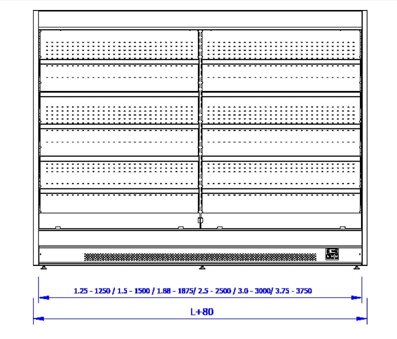 - Elektroniczny termostat z cyfrowym wyświetlaczem 5 rzędów półek z listwami cenowymi, malowane na kolor biały, z możliwością regulacji wysokości i kąta zawieszenia