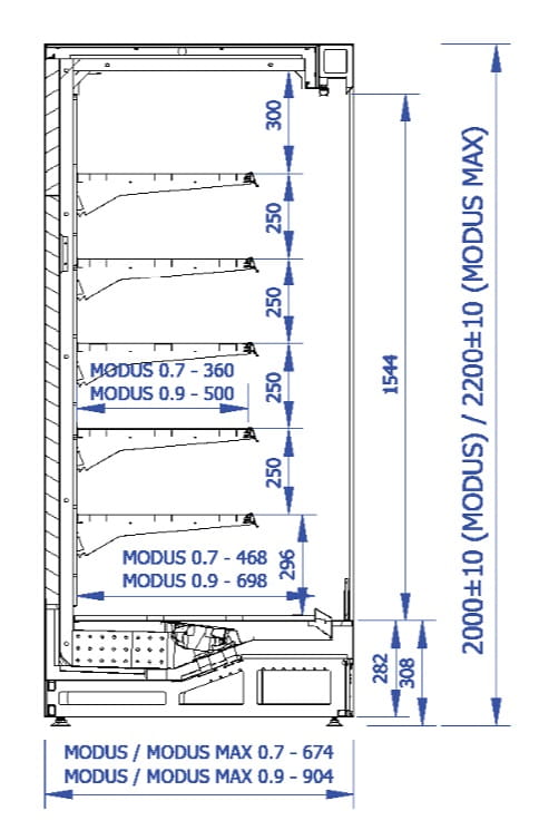 Regał chłodniczy MODUS 0.9 | 2580x904x1990 mm | pod agregat zewnętrzny
