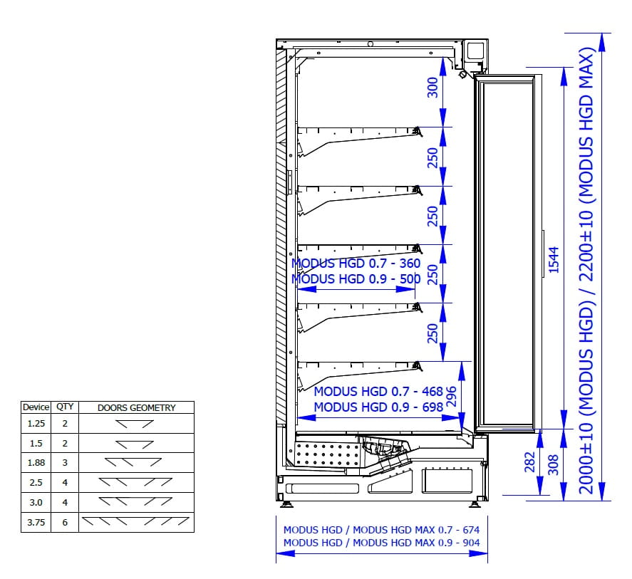 Regał chłodniczy MODUS HGD 0.7 | 2580x674x1990 mm | pod agregat zewnętrzny