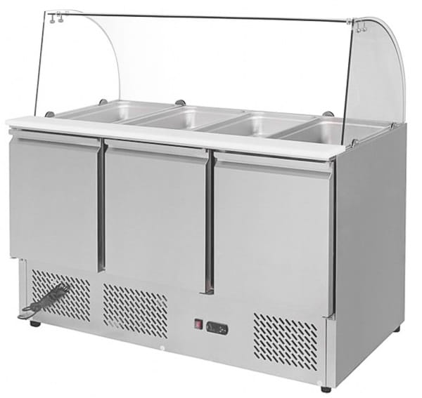 - Trzydrzwiowy sałatkowy stół chłodniczy ESL3814 wykonany ze stali nierdzewnej