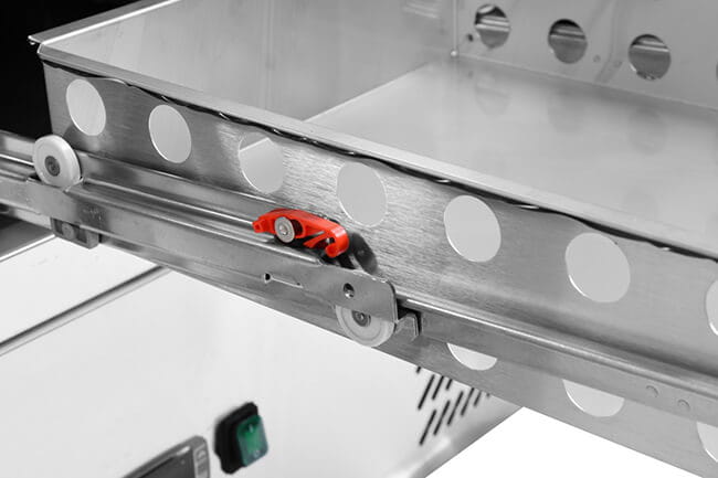 - 6 szuflad w standardzie GN 1/1 o wymiarach wewnętrznych 520x295 mm i głębokości 155 mm