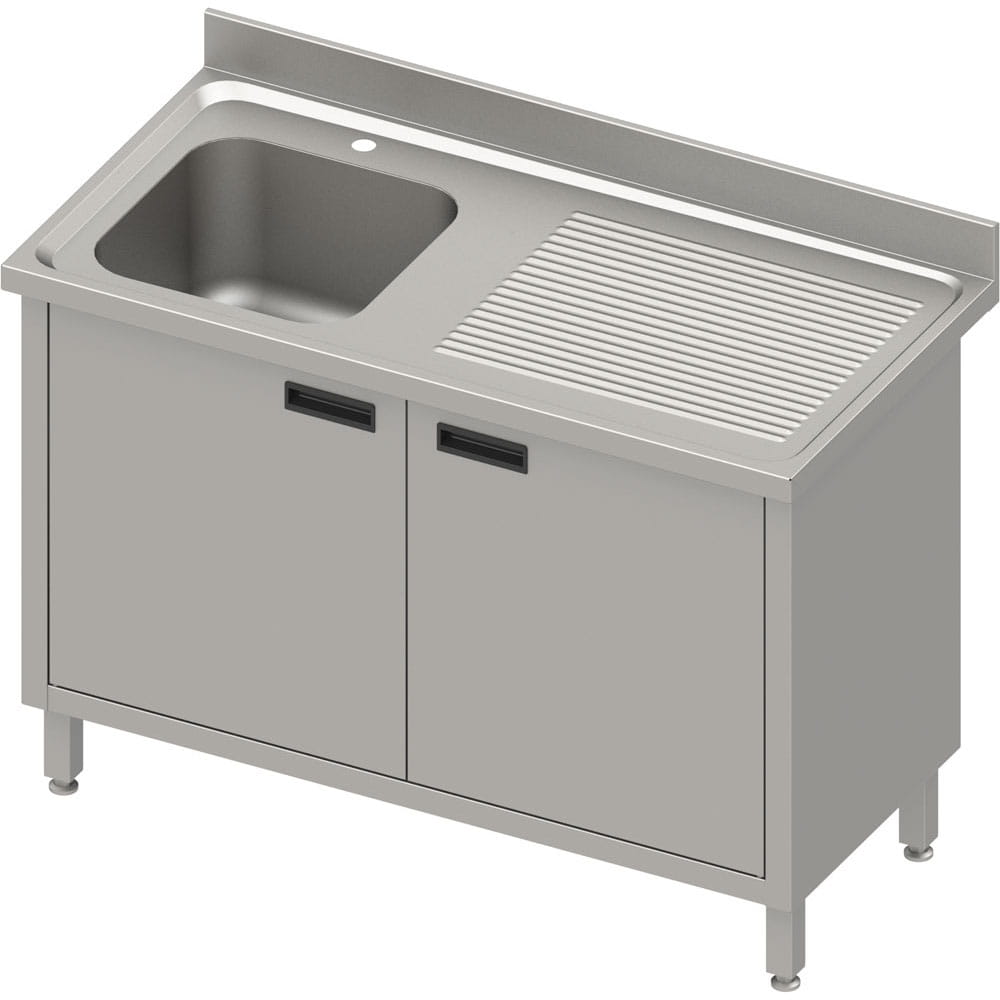 Stół ze zlewem 1-kom.(L) | drzwi skrzydłowe | 1500x600x850 mm| blat tłoczony | rant puszkowy 100x15x10 mm