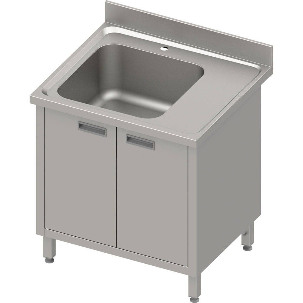 Stół ze zlewem 1-kom.(L) | drzwi skrzydłowe | 900x700x850 mm| blat tłoczony | rant puszkowy 100x15x10 mm