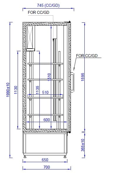 Szafa chłodnicza CC 1600 | drzwi pełne | 1377 l | 1600x700x1990 mm